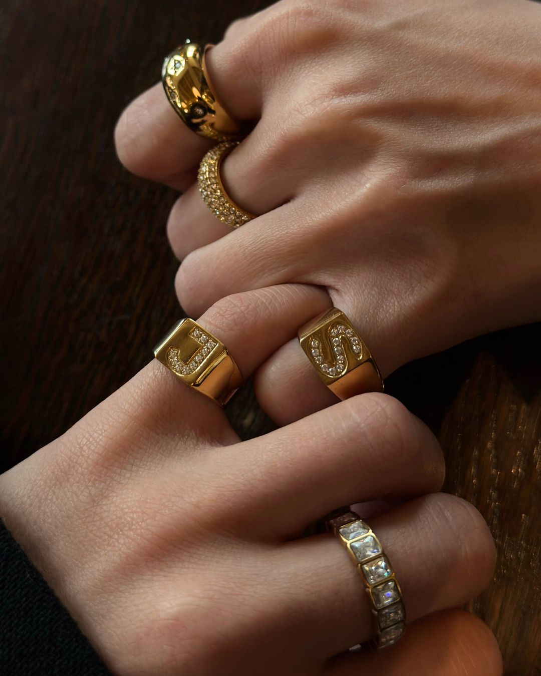 Krystal Bogstav Firkantet Signet Ring 18K Guldbelagt