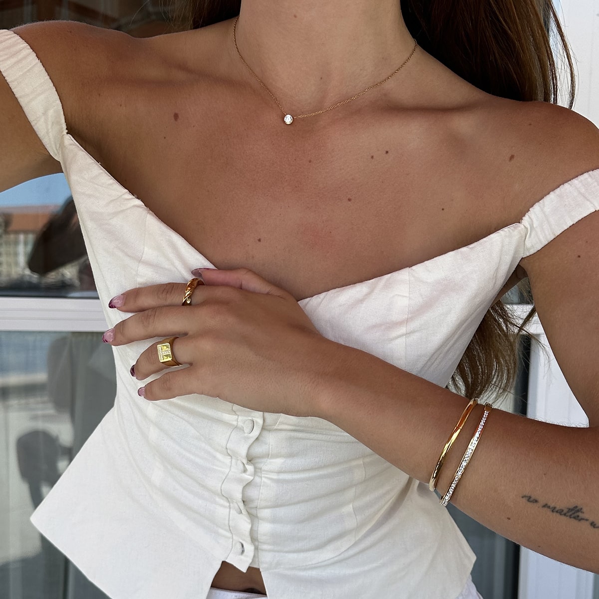 Hver form er nøje udvalgt til at indfange forskellige sider af kvindelighed – fra det bløde og organiske til det stringente og moderne. Uanset hvilken du vælger, får du et smykke, der føles let, luftigt og smukt mod huden – som små dråber af lys, der danser, når du bevæger dig.