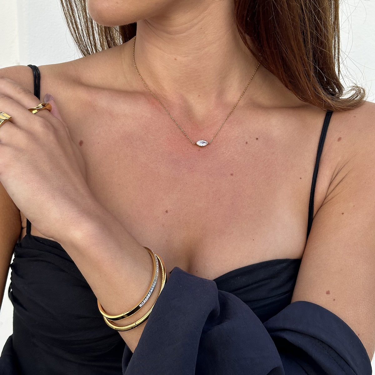Min Floating krystalhalskæde har været en af mine absolutte bestsellere siden den kom ud – og det forstår jeg godt. Den enkle, svævende krystal er både tidløs og alsidig, og kan bæres til alt fra en hvid t-shirt til en silkekjole.