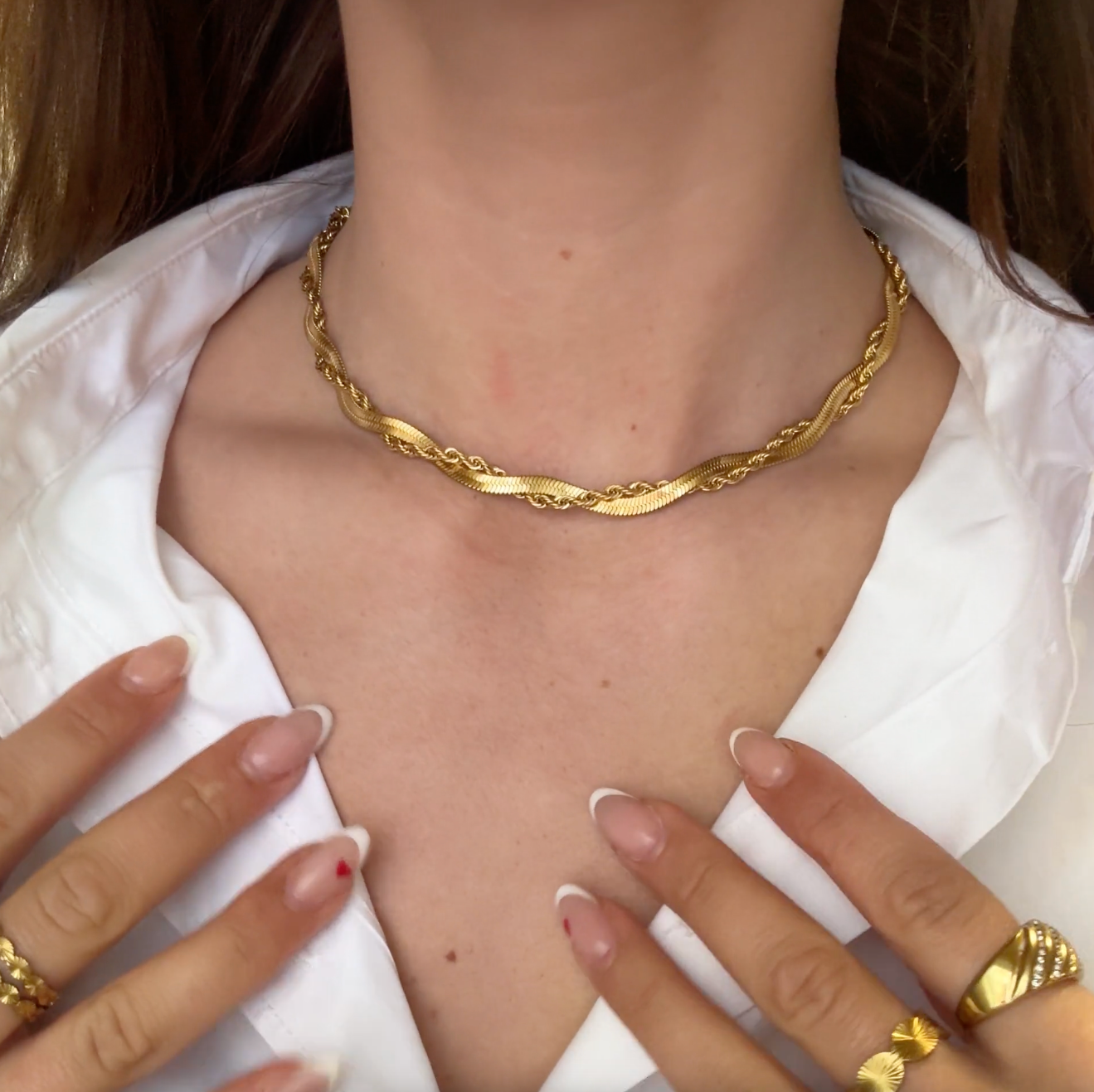 Du kan også sno andre tynde kæder med hinanden og opnå samme statement look, kreativiteten har ingen grænser <3