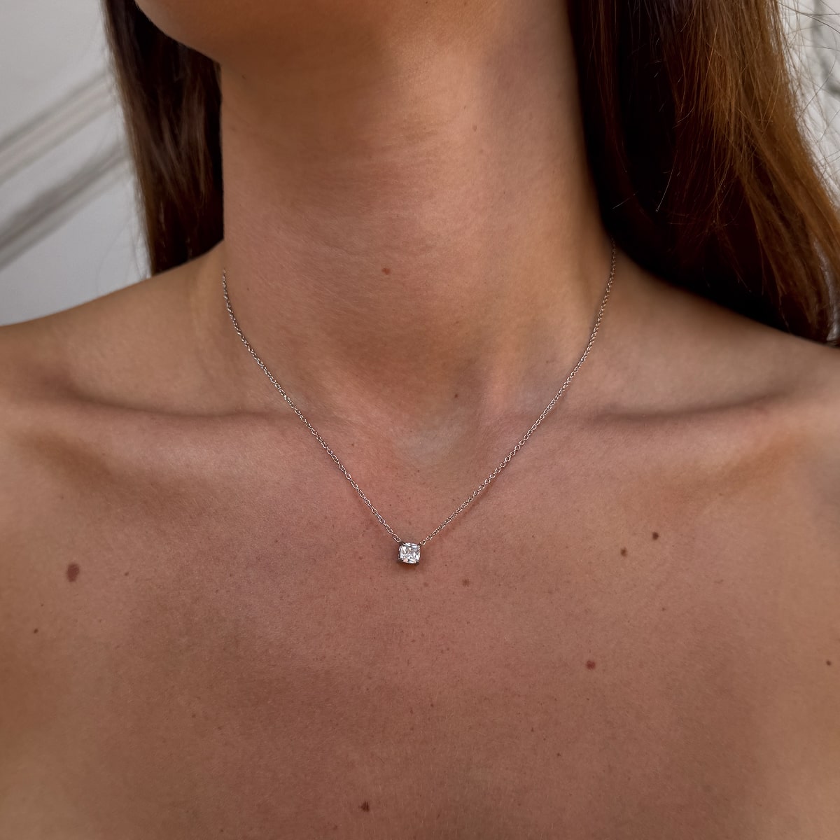 Floating Krystal Halskæderne er skabt til at fremhæve din naturlige elegance med sit minimalistiske og luftige udtryk. Den svævende zirkon ligger let mod huden og reflekterer lyset smukt, så halskæden både fungerer som et diskret hverdagssmykke og som en del af et mere festligt look.