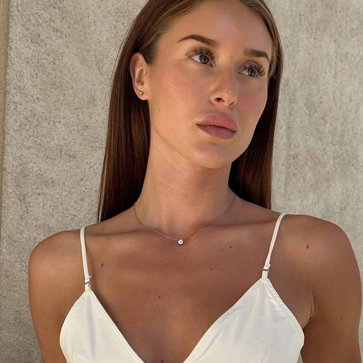 Halskæden er oplagt at style sammen med krystal studs, hvor de samme slibninger går igen. Kombinationen skaber et gennemført og sofistikeret udtryk – uanset om du vælger et enkelt par klassiske studs eller leger med flere huller i øret for et moderne mix.