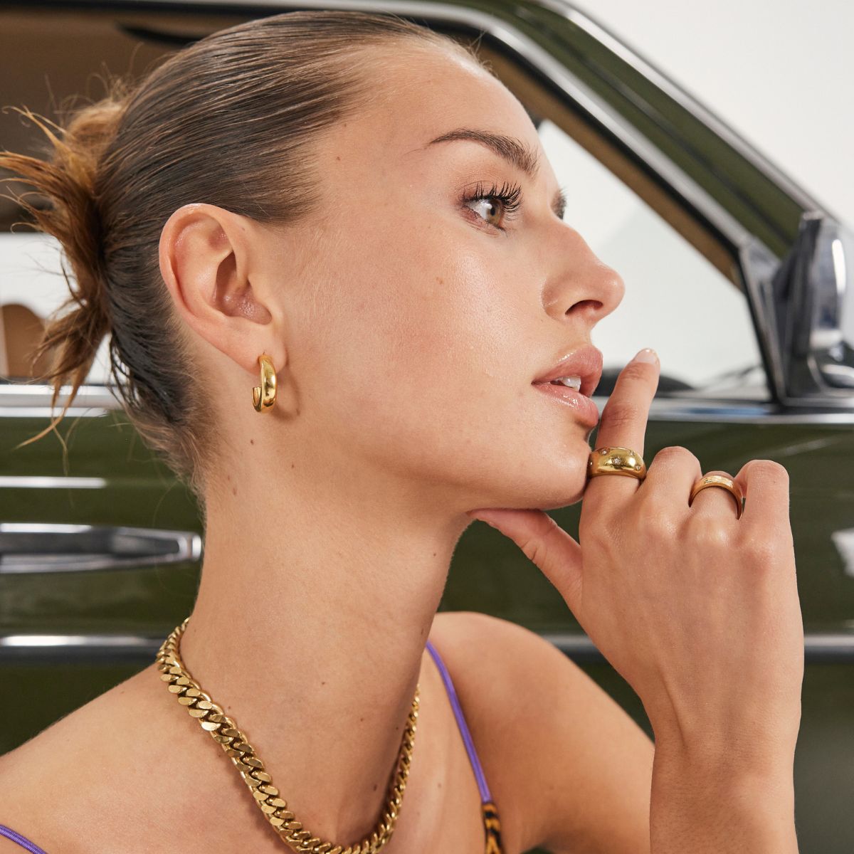 Materialer af stål, der er belagt med PVD-teknikker, er lavet til at modstå det meste - Deres slidstyrke gør at farven ikke falmer så nemt som andre guldbelagte smykker.