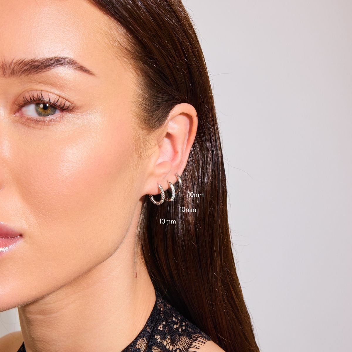 Øreringen måler ca 10mm indre diameter og er 1,99mm tykke. En ørering vejer 0,77 gr. Du betaler for ét par øreringe.
