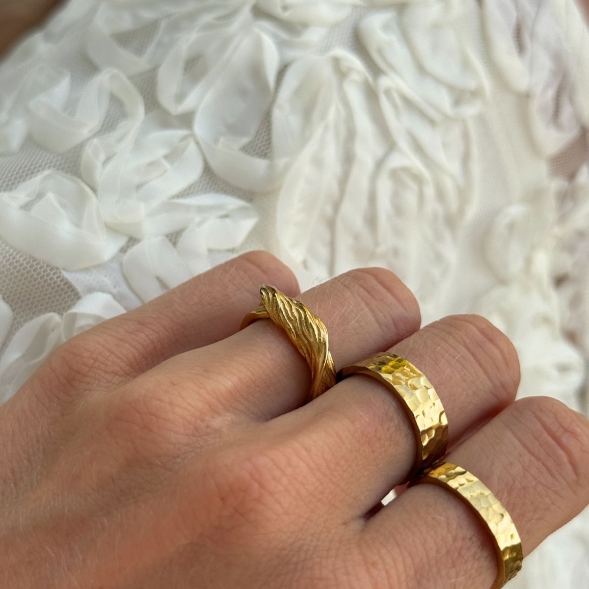 En fortolkning af vindens evige kredsløb – en ring, hvor begyndelse og slutning smelter sammen i en blød, organisk bevægelse. Ringen er både enkel og kompleks – den har en klassisk rund form, men med en kunstnerisk twist, der giver kant og dybde uden at miste sin lethed.