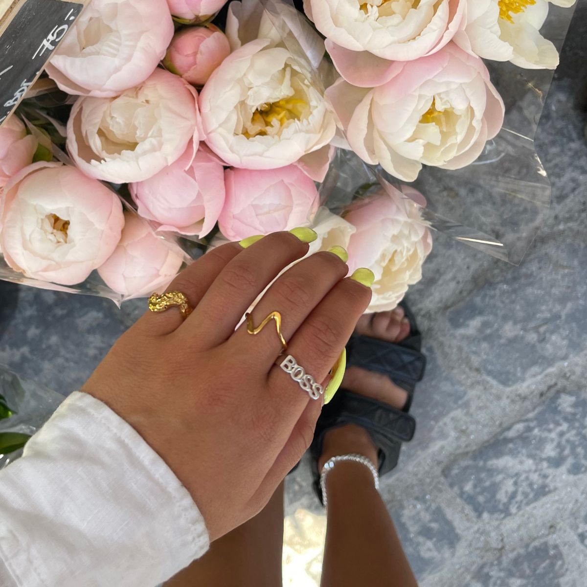 Signet ring med BOSS, der gør den rå og feminin. Bruges ofte på pegefingeren for et cool look! Kender du en BOSS, er du en BOSS? - så er ringen perfekt til dig!