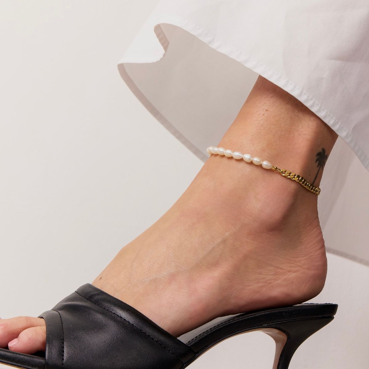 Panser Facet Perle Ankelkæde 18K Guldbelagt 5mm Camilla Krøyer Jewellery